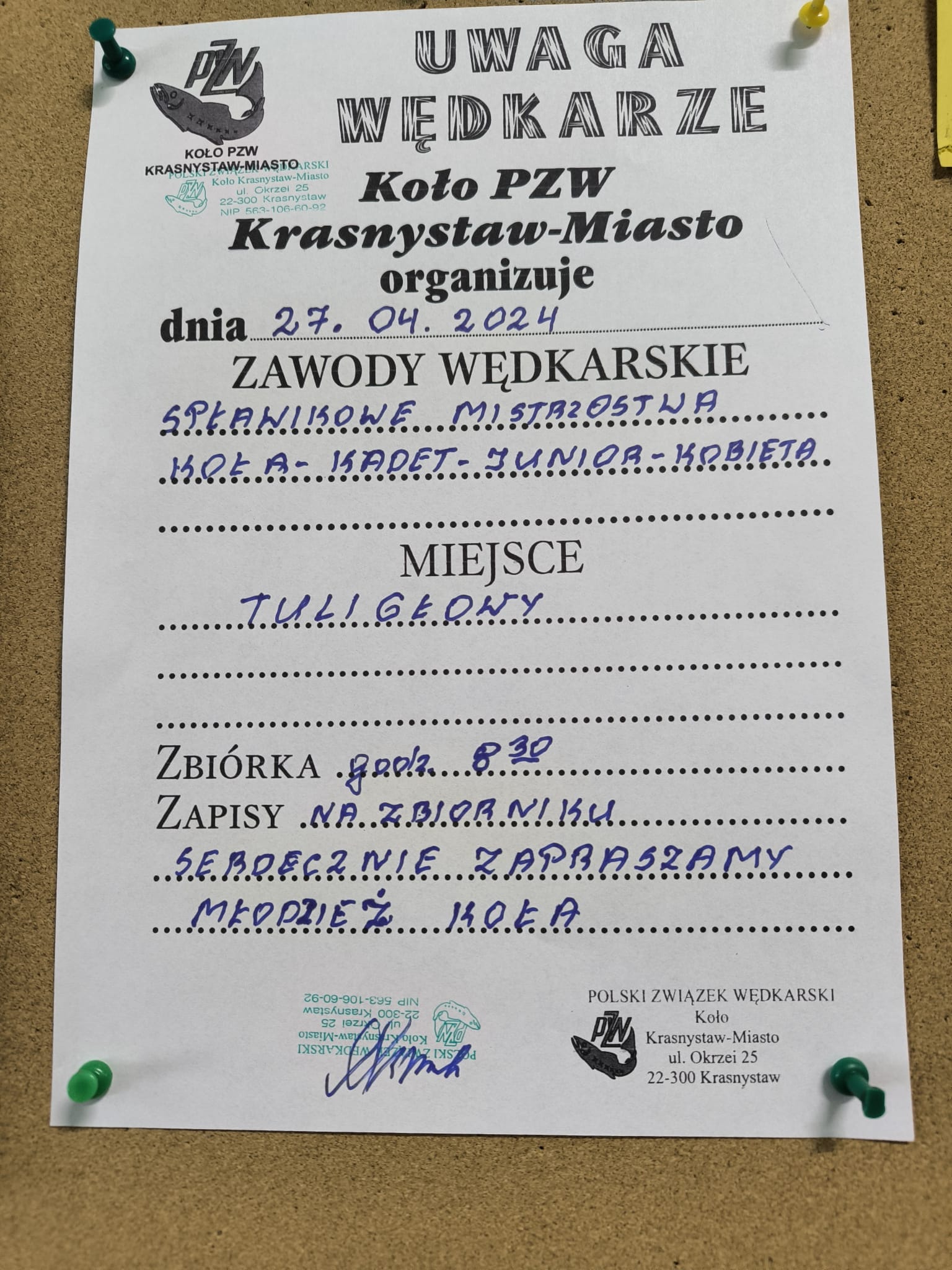 Ogłoszenie na zawody " Spławikowe Mistrzostwa Koła"